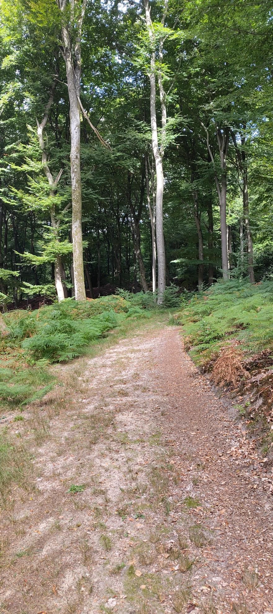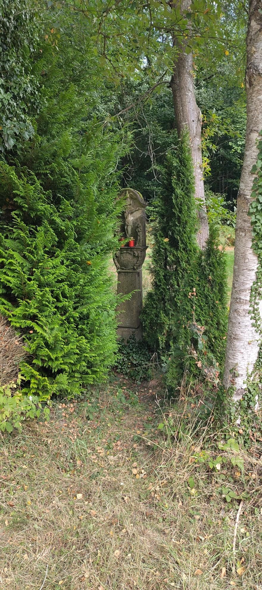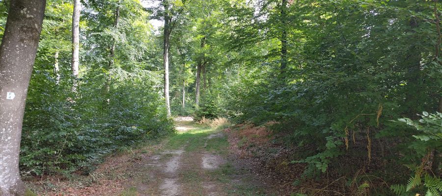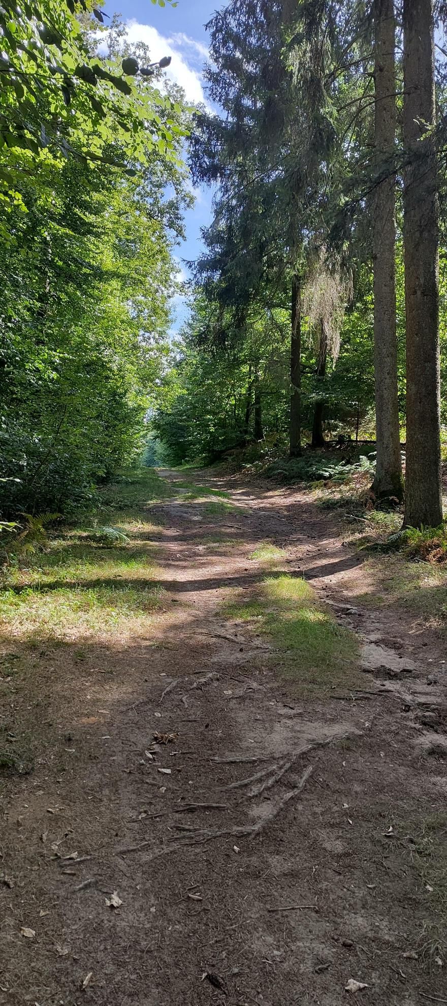 Der Weg beginnt in Angelsberg und führt zunächst an einem alten Wegkreuz vorbei, bevor er über offene Felder in den Wald hineinführt. Auf breiten Waldwegen schlängelt sich die Strecke durch das dichte Grün, gesäumt von markanten Felsformationen, die teils frei im Gelände liegen. Anschließend geht es über die Straße, vorbei an Feldern, zurück zum Ausgangspunkt.