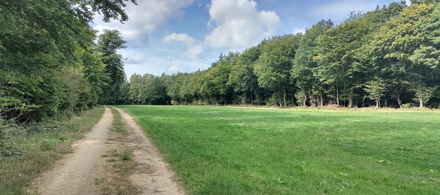Ruhige Wanderung über offene Felder und durch den Wald entlang an Felsformationen.