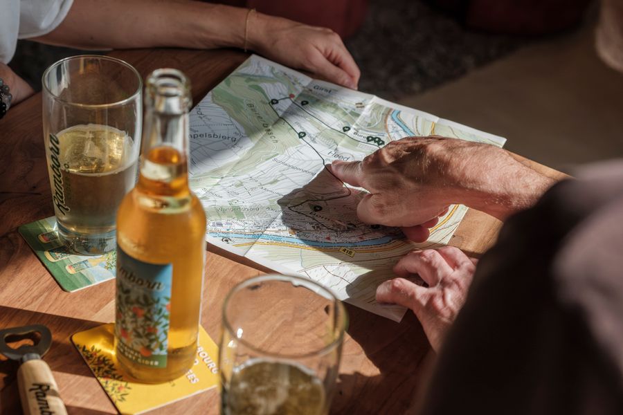 Äpfel von Streuobstwiesen, die zu leckerem Cider verarbeitet werden: Luxemburg hat Tradition, was Cider-Herstellung angeht. Die drei Gründer vom „Ramborn Cider Haff“ lassen das wiederaufleben. In Zusammenarbeit mit Landwirten aus der Umgebung stellen sie aus über 100 Apfelsorten auf ihrem Hof Cider her, der auch mal überraschende Aromen wie Vanille und Rum entfaltet und schon internationale Preise gewonnen hat. Die Äpfel stammen von lokalen Streuobstwiesen und werden vor Ort gepresst; die Cider können von Besuchern verkostet und gekauft werden.