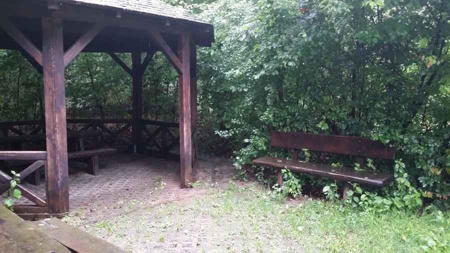 Natuurlijke barbecueplaats met een barbecue onder dak en zitgelegenheid.
