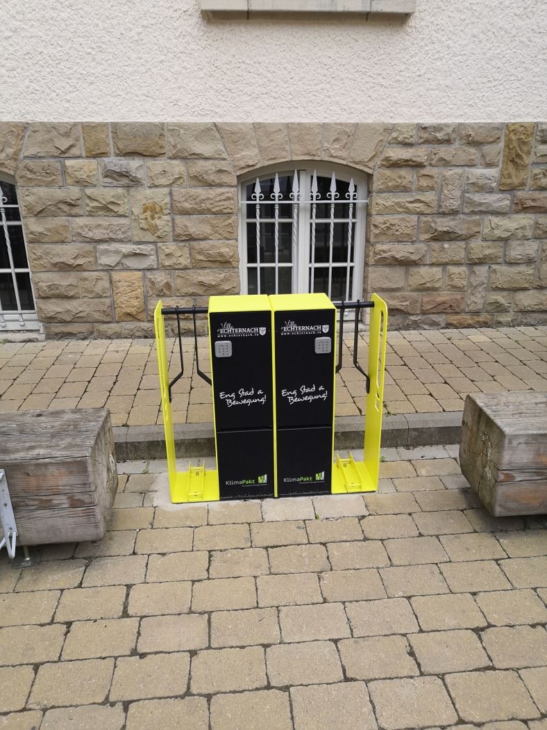 Voor de Maison Régionale, in het centrum van de stad, staan twee oplaadpunten voor e-bikes.
