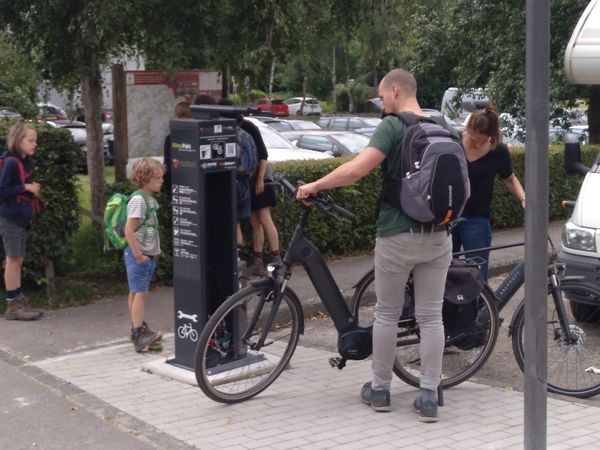 Er is een oplaadpunt voor e-bikes in de buurt van de Tourist Info.