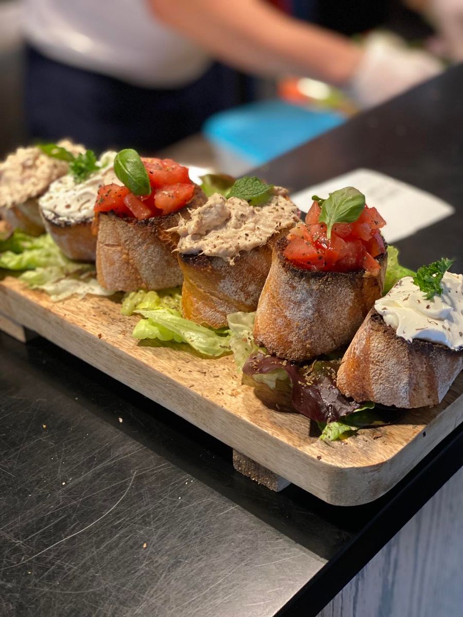 Geniet van verse huisgemaakte specialiteiten zoals lasagne, tarte flambée en verschillende tapas in het M Café um Moart aan het mooie marktplein.