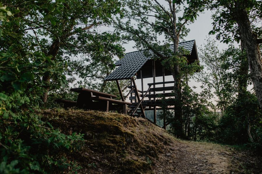 Het uitkijkpunt Kinneksknäppchen ligt op een heuvel. De kleine uitkijktoren hier is ideaal om het landschap te bewonderen met de ruïnes van kasteel Brandenburg op de tegenoverliggende heuvel. Iets verderop staat ook een picknicktafel.