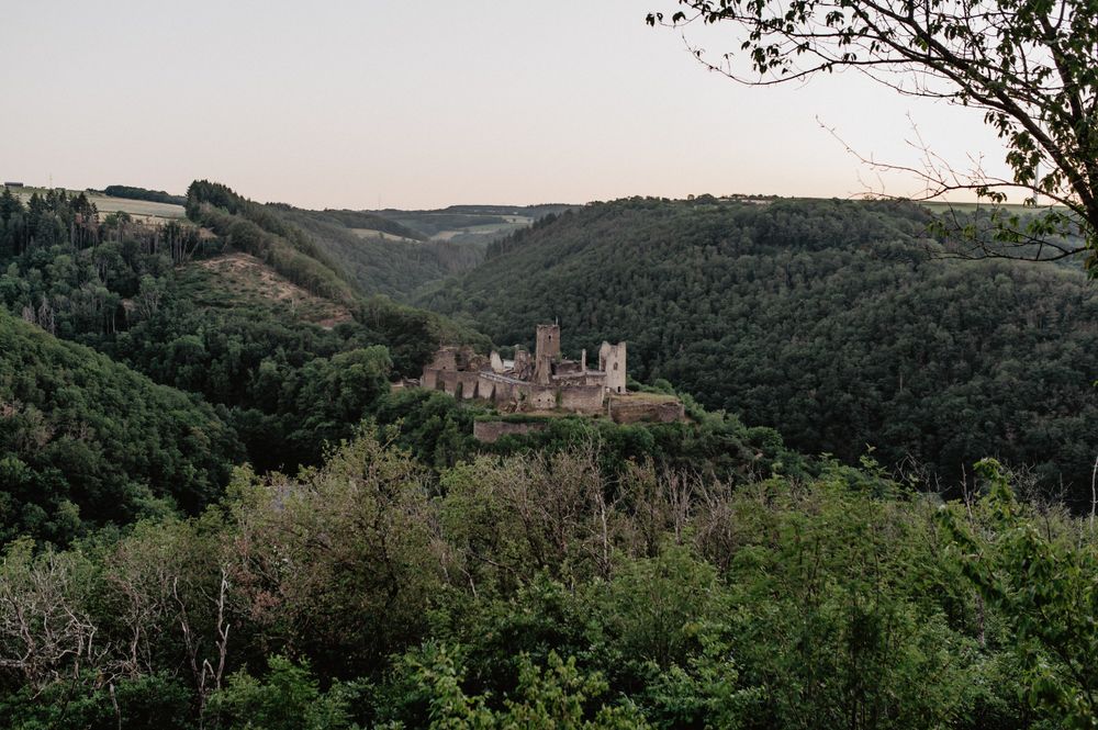 Kinneksknäppchen, of Koningsheuvel in het nederlands, biedt een prachtig uitzicht op de ruïnes van het middeleeuwse kasteel Brandenbourg, ten noorden van Luxemburg.
