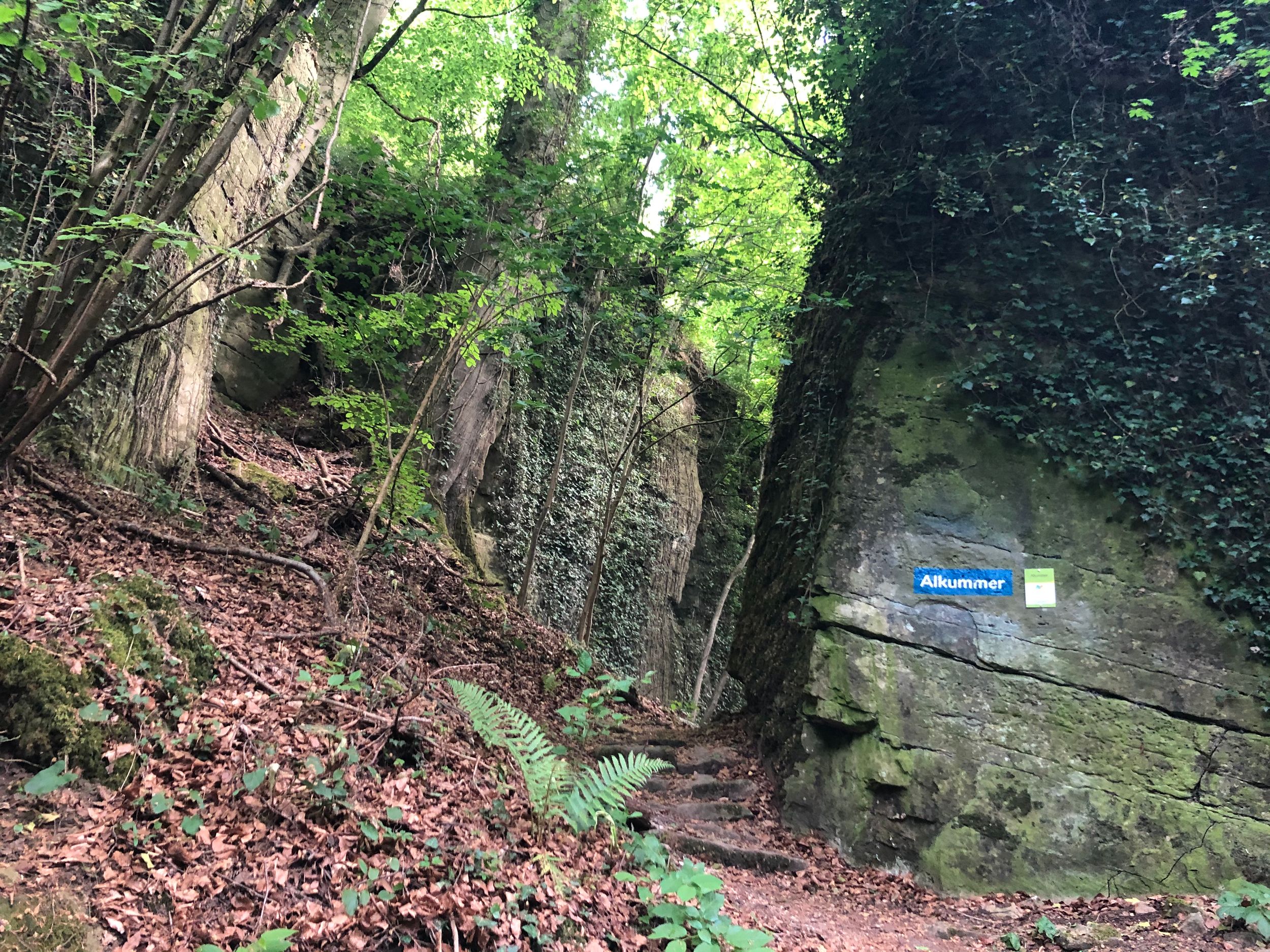 De "Alkummer" is een imposante kloof uit dolomiet. Het dolomiet vormt steile kliffen en wordt verdeeld door een netwerk van verticale scheuren en breuken (kloven). Water sijpelt door de kloven in het dolomiet en verzamelt zich op de onderliggende mergel, een klei-rijke rots. Gedurende een zeer lange tijd glijden de rotswanden van het dolomiet over de verzachte mergel en breken in grote stenen. De smalle, wandelbare rotspassage "Alkummer" is ontstaan omdat hier de blokken niet volledig omgevallen zijn.