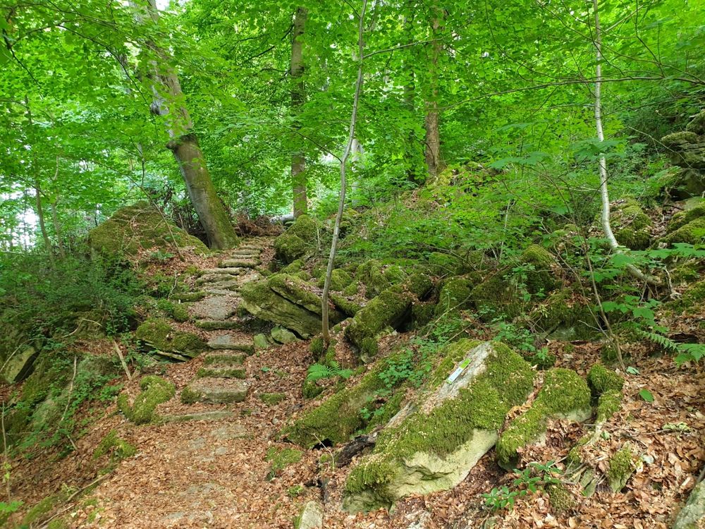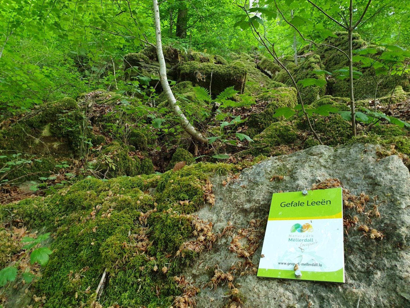 Bedekt met mos, korstmossen en varens, liggen de "Gefale Leeën" - "gevallen rotsen" - langs het pad. De rotsen zijn van dolomiet en van de grote rotswand gevallen. Water sijpelt door kloven in de dolomiet en verzamelt zich op de onderliggende mergel, een klei-rijke rots. Over een langere periode glijden de rotswanden van de dolomiet over de verzachte mergel naar de vallei. Grote valpartijen zoals de "Gefale Leeën" kunnen gebeuren in de rotswanden van de Dolomieten, maar zijn zeldzaam. Ze worden meestal begunstigd door intense erosie van de hellingvoet door de rivier de Sûre. Op het rusteloze reliëf rondom de gedeeltelijk overgroeide stenen blokken heeft zich een kloofbos ontwikkeld. Een kloofbos bestaat uit linden, esdoorns, beuken en iepen en groeit op steile hellingen waar de bovenste laag van aarde en gesteente niet stabiel is.