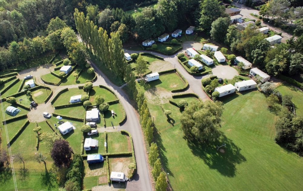 Centrum van 't land, op het kruispunt van de toeristische wegen en paden. Rustige ligging, zwembad. Speeltuin. Animatie voor kinderen. Restaurant met terras met uitzicht op het dal van Mersch, gratis Wifi. Verhuur van mobilhomes.