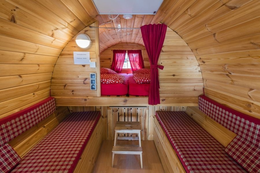 De camping is aangelegd op verschillende terrassen. Er zijn Finse kota's, slaaptonnen en chalets te huur.