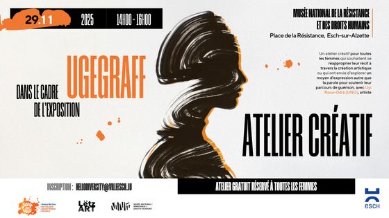 As part of the Ugegraff exhibition, the Service for Gender Equality, Diversity & Intercultural Living Together of the City of Esch, the National Museum of Resistance and Human Rights, and Lëtz Art asbl invite you to a discussion on the role of art and artistic creation: on the one hand, as a means to raise awareness of gender-based violence, and on the other hand, as a form of expression supporting the individual healing and reconstruction process of survivors.