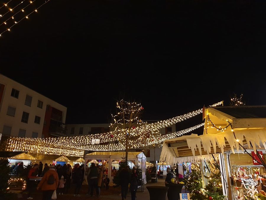 Kerstmarkt in Mondorf-les-Bains op de Place des Villes Jumelées.
