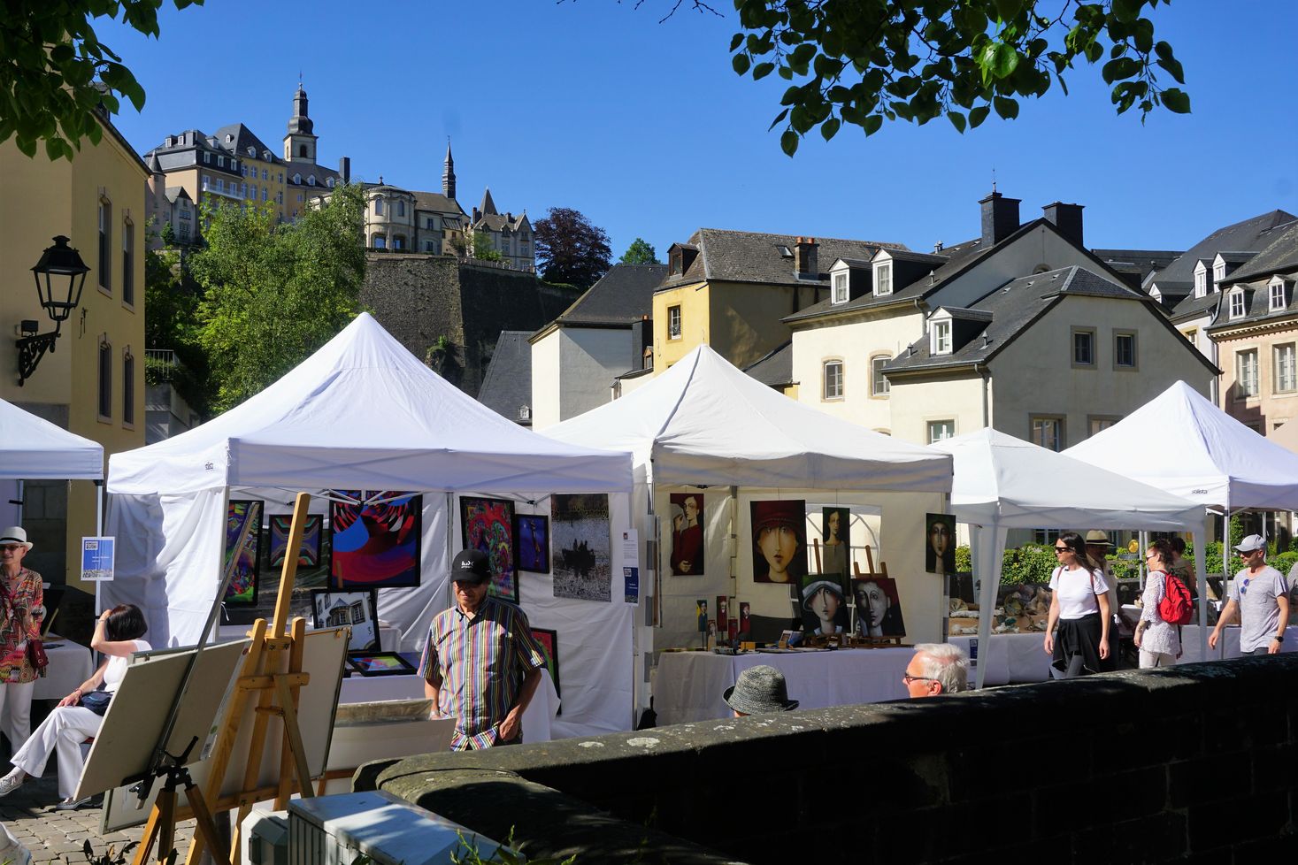De Open Air Gallery strekt zich uit over de beroemde brug aan de Münsterstraat en toont de nieuwste werken van de deelnemende internationale kunstenaars. Het aanbod varieert van schilderkunst, tekeningen, fotografie, digitale kunst tot glas, keramiek, hout en gesmede beeldhouwwerken. De toegang is gratis en verloopt via de rue de Prague en Sosthène Weis, of via de parking "St.Esprit" (bvd Roosevelt), vanwaar een lift de verbinding vormt tussen de boven- en benedenstad "Grund". Bezoekers kunnen kunst en een wandeling combineren en zo ongetwijfeld een van de mooiste wijken van de hoofdstad herontdekken of herontdekken. Voor de kleine honger en dorst bieden plaatselijke verenigingen en restaurants eten en drinken aan.