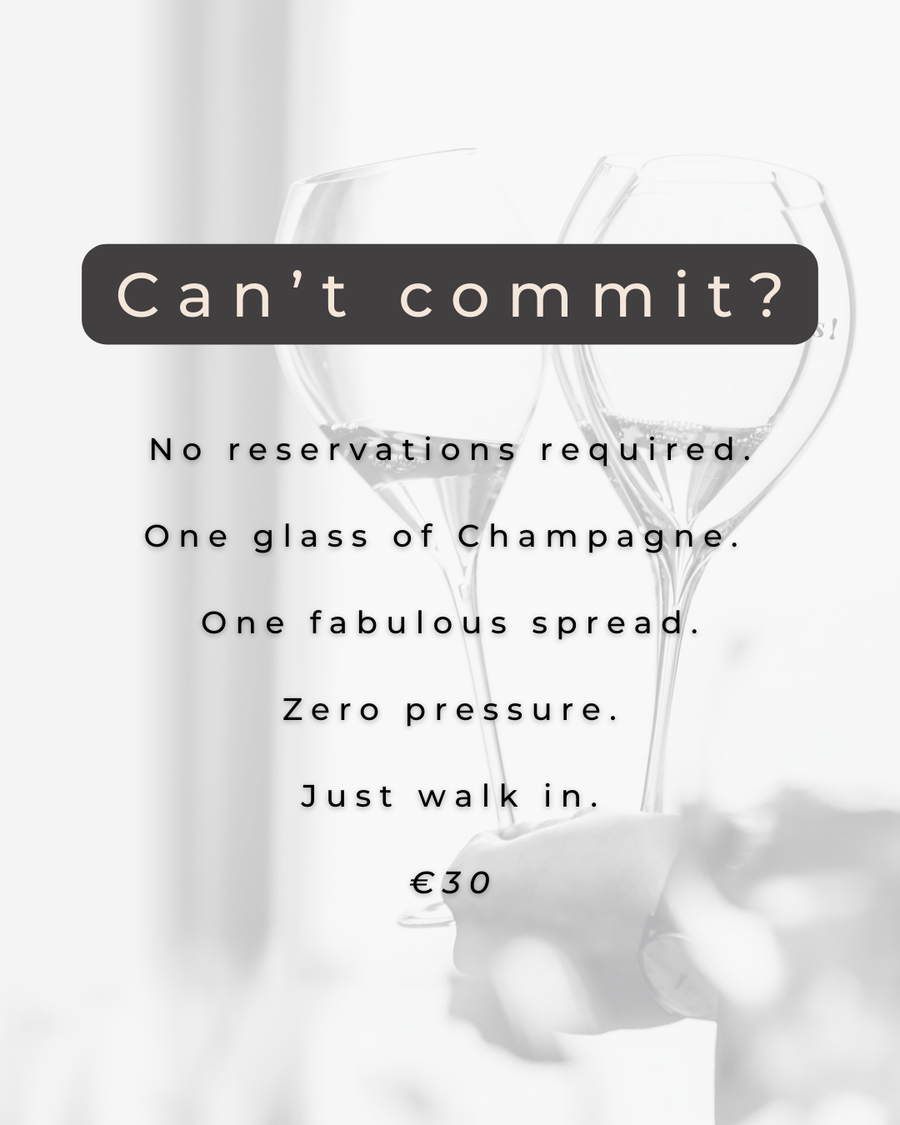 One glass of Marc Hébrart Blanc de Blancs 1er Cru. One Italian-style aperitivo spread. Zero pressure.