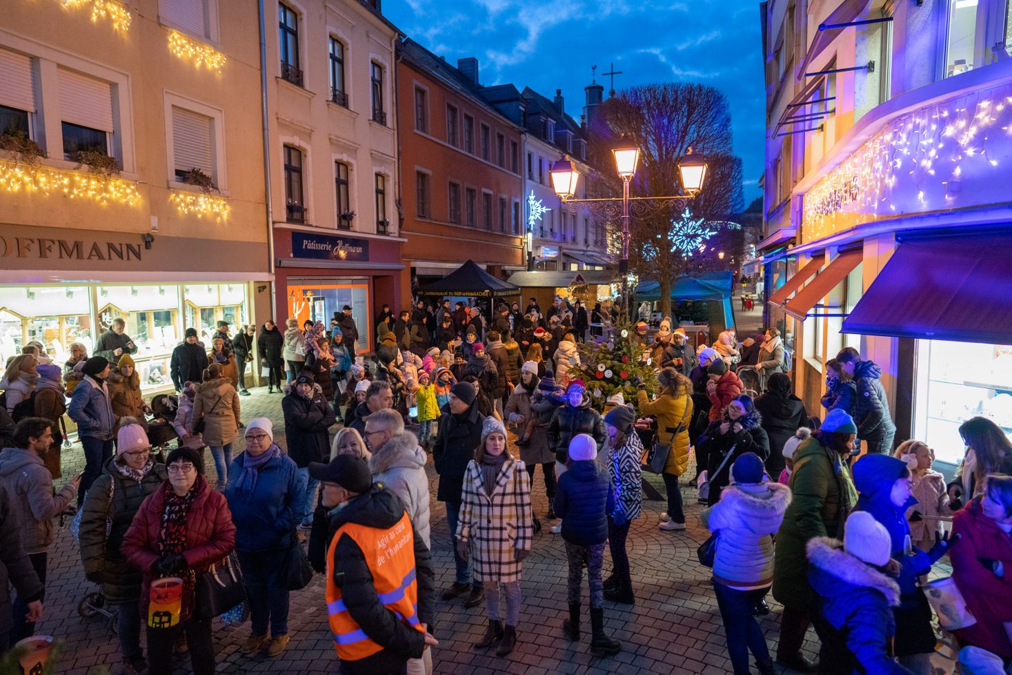 Kerstmarkt in Grevenmacher op het marktplein.