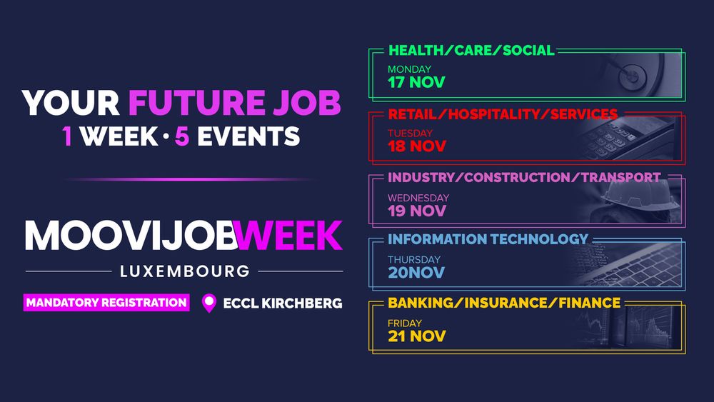 - Registration is mandatory to be able to be selected and access the event: https://en.moovijob.com/events/moovijob-week ?utm_source=echo-lu&utm_medium=referral&utm_campaign=mw25-agenda