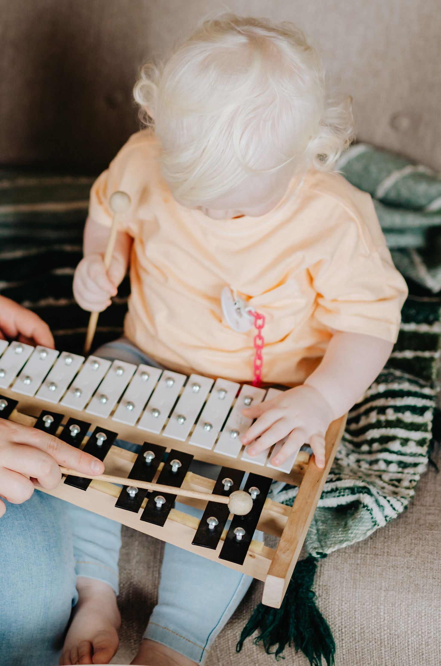 Accompanied by an adult (mom, dad, grandma, grandpa, ...), children discover the world of music.