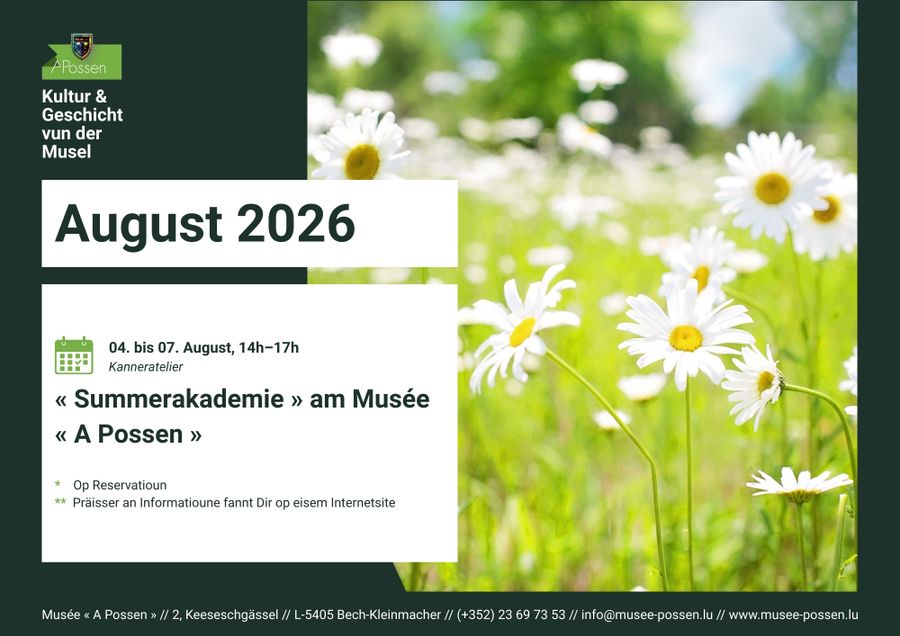 Reservation required at +352 23 69 73 53 or by email at info@musee-possen.lu