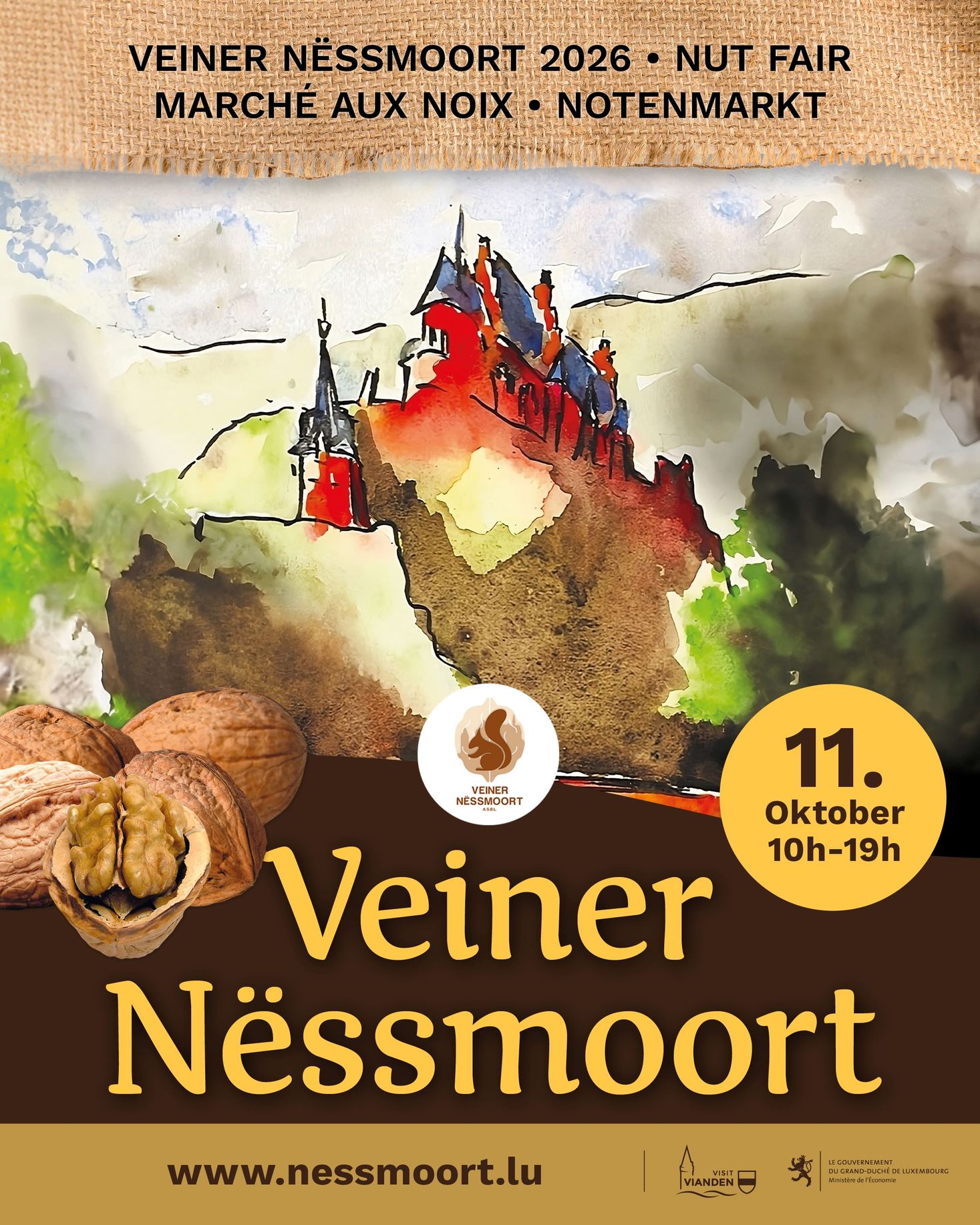 The preparations for the nut market obviously do not only start two weeks before. The preparation of the "Nëssdrëpp" (Nut-Schnaps) is taking a longer time. The "Nëssdrëpp" is made of young nuts that are picked while the paring is still green and when they are almost as small as the top of a little finger. Then you put them on brandy and after they reached maturity you get the "Nëssdrëpp" which is pleasant and stimulating for the stomach.