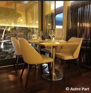 Restaurant AutrePart, gelegen aan het marktplein in Differdange, staat bekend om zijn warme sfeer en ontspannen inrichting.