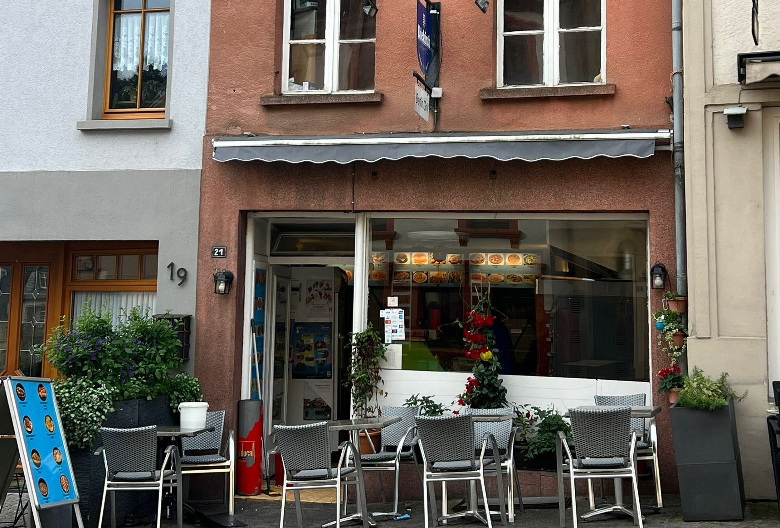 Snackbar met kebab, fastfood en zomers terras. Gelegen in het hart van de oude stad Vianden.