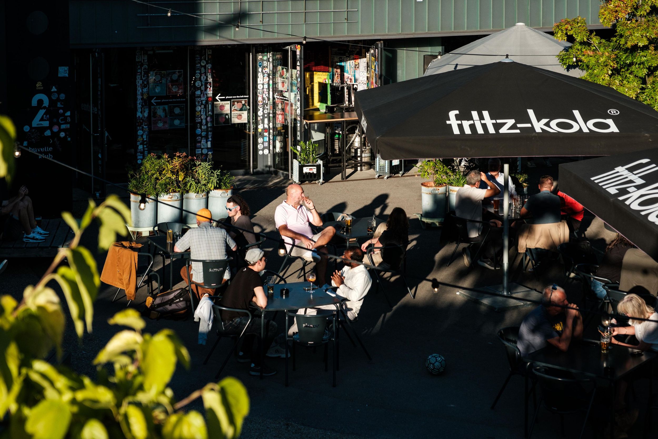 Van ontspannen afterworks tot zonnige terrasjes met je familie, :Buvette by De Gudde Wellen combineert ambachtelijke bieren, pittige cocktails en mocktails en feelgood-snacks met het altijd bruisende culturele programma van Rotondes.