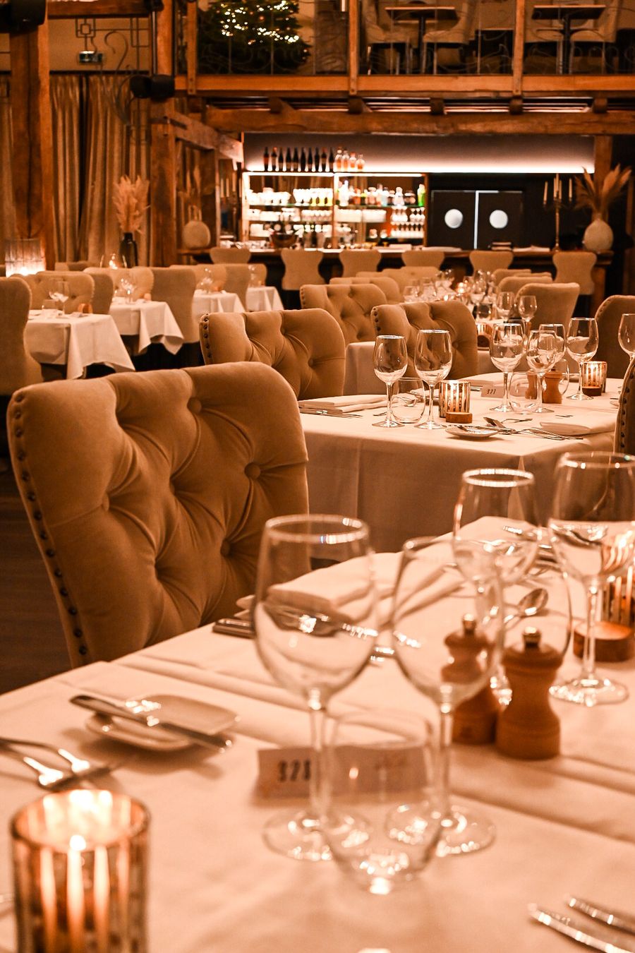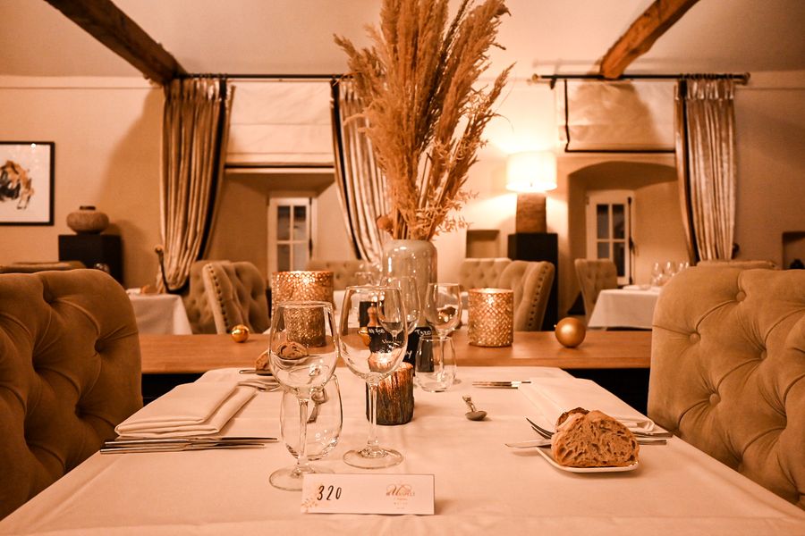 Elegant restaurant in Château d’Urspelt met verfijnde keuken en terras in de historische binnenplaats. Onderdeel van het hotel.