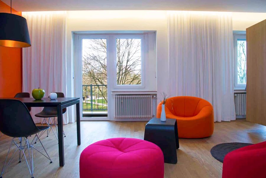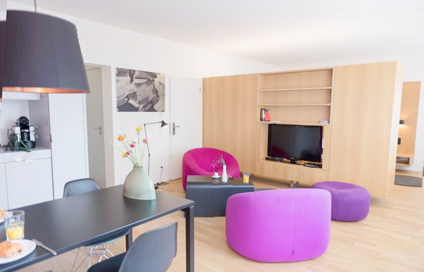 biedt studio's en appartementen van 45 m2 tot 70 m2, allemaal volledig gemeubileerd en voorzien van een keuken of kitchenette. Sommige appartementen hebben een balkon en één appartement heeft een eigen tuin met uitzicht op het park. Scholen en restaurants bevinden zich om de hoek.