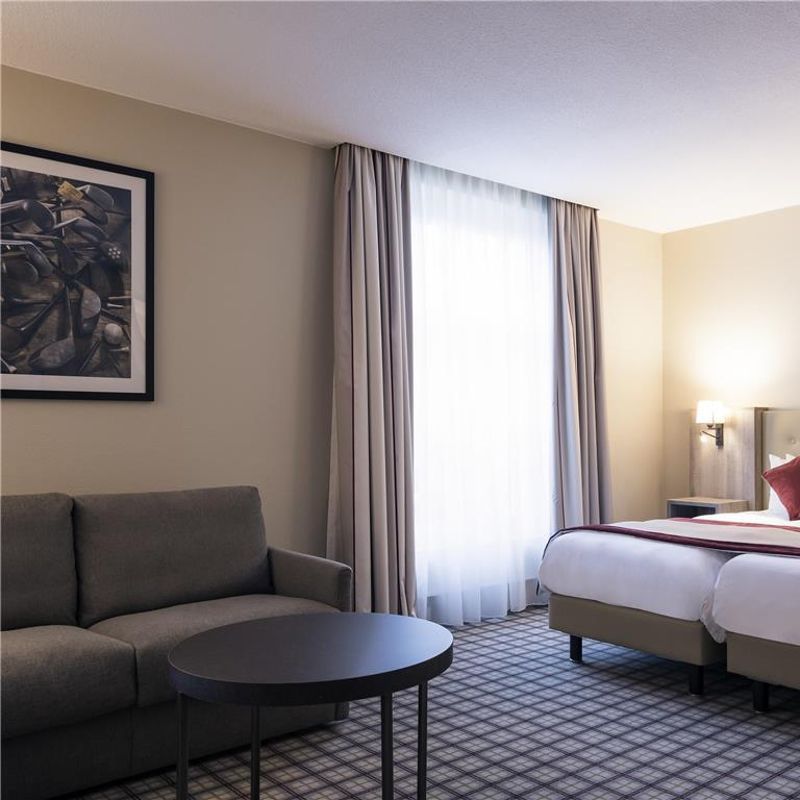 Geniet van een ontspannen overnachting in een uniek viersterrenhotel in Luxemburg. Mercure Luxembourg Kikuoka Golf & Spa Hotel ligt in een natuurlijke en uitzonderlijke omgeving op slechts 20 min van Luxemburg-stad en is de ideale plek voor uw gezins- of romantisch verblijf en voor uw zakenreizen. Ontspan in ons wellnesscentrum, geniet van een drankje met uitzicht op de golfbaan op het terras van de Eagle Bar en breng een gastronomisch moment door met het lokale menu van onze Um Scheierhaff Bistro.