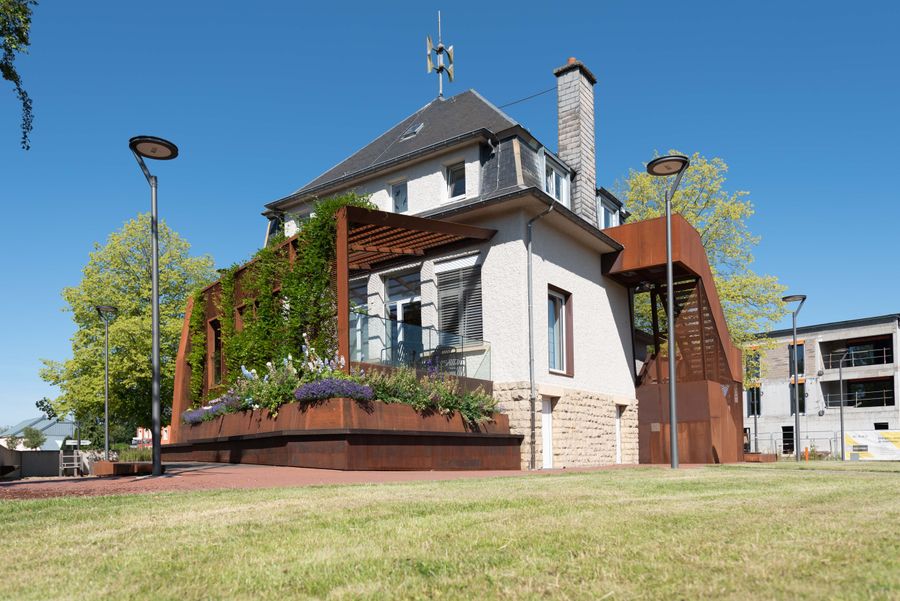 De nieuwe entree vanaf de hoofdverkeersas opent de "Kabaischen" naar buiten. Ook de buitenruimte werd aangevuld met verweerde stalen elementen, die de "Kabaischen" en de omgeving optisch versterken en verder in scène zetten. Deze stalen creaties roepen de kleur en het werk van de staalindustrie van Minett op.