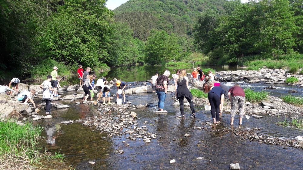 Een ander onderdeel van de activiteit brengt de groep naar de zoetwatermosselkweekstation bij de Kalborner Mühle. Hier leren de kinderen waarom zoetwatermosselen steeds zeldzamer worden en welke maatregelen worden genomen om ze te beschermen. Stap voor stap volgen ze hoe kleine larven uitgroeien tot jonge mosselen, die later weer worden uitgezet in hun natuurlijke leefomgeving.