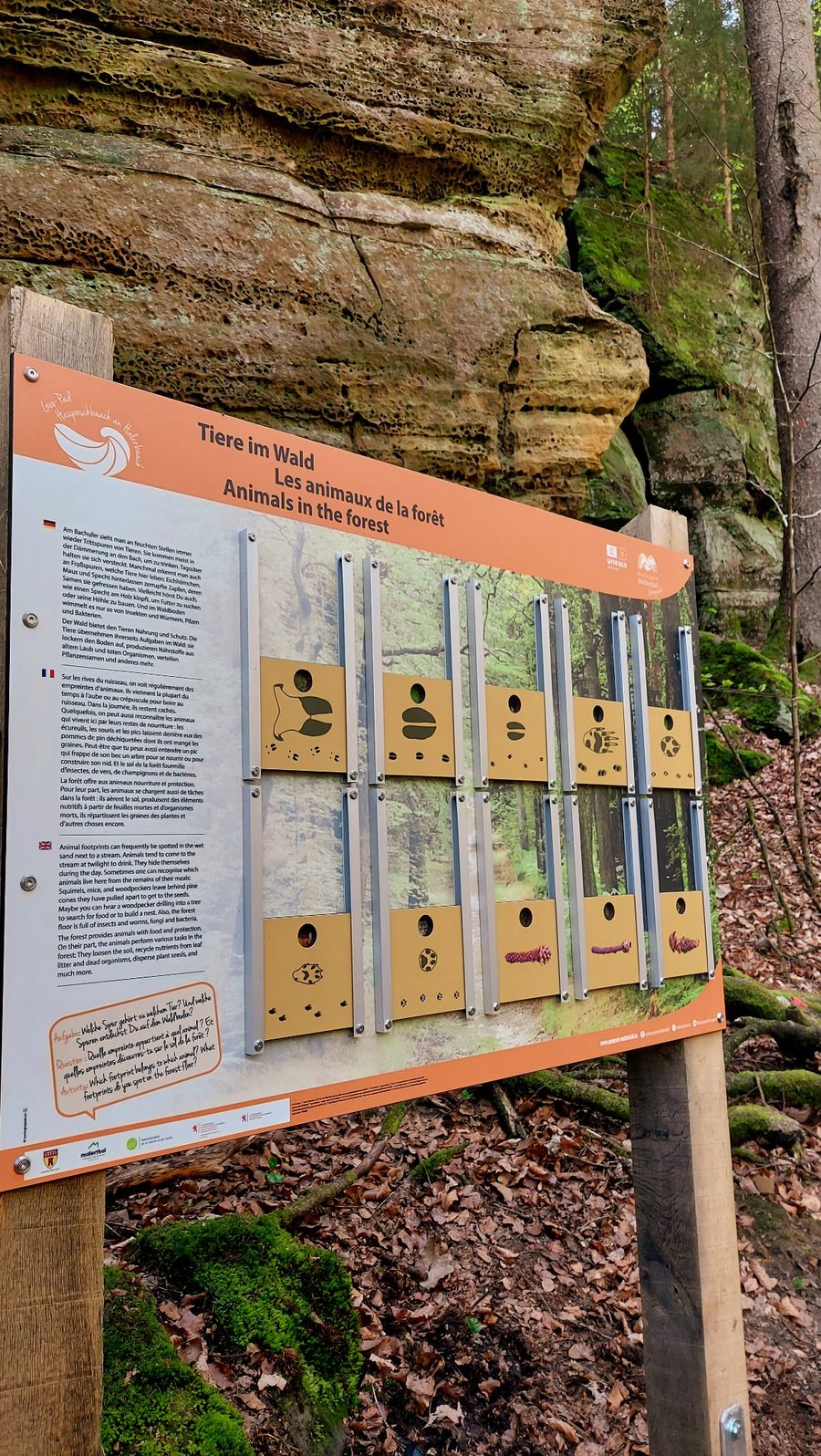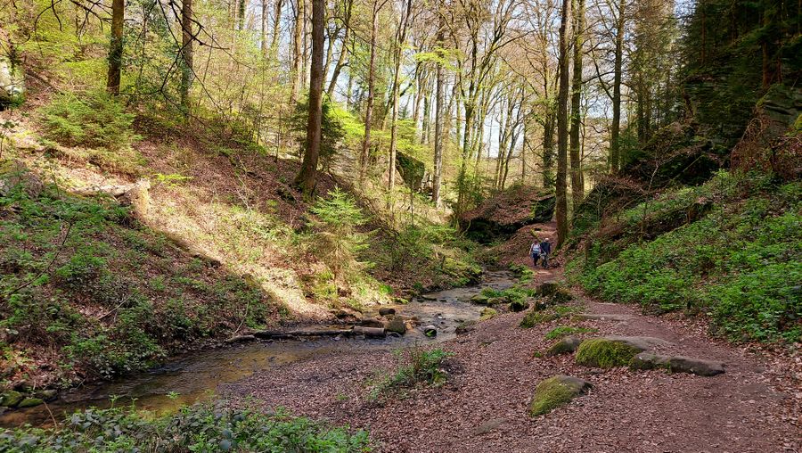 Het pad loopt door de smalle vallei in de Luxemburgse Zandsteen war vragen over water kunnen opduiken. Wat heeft water te maken met de vorming van het zandsteen? Welke processen kunnen we vandaag de dag in een beek waarnemen? Welke dieren en planten leven er langs de beek? Waar komt water vandaan en hoe gebruiken mensen water en zijn kracht? Antwoorden op al deze vragen krijg je tijdens de wandeling.