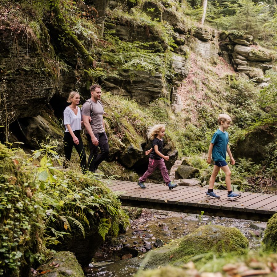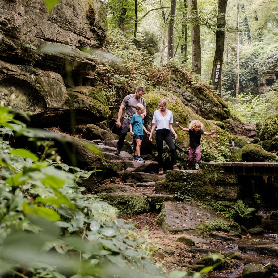 Wandeling: Route 3 Mullerthal Trail, W5 (10,1 km), Geo-Pad Haupeschbaach-Halerbaach (4,9 km)