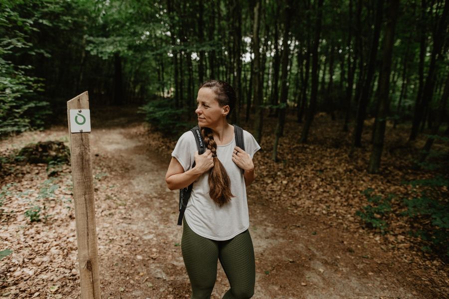 Het wandelpad is gemarkeerd in beide looprichtingen. Volg de wit-groene markeringen.