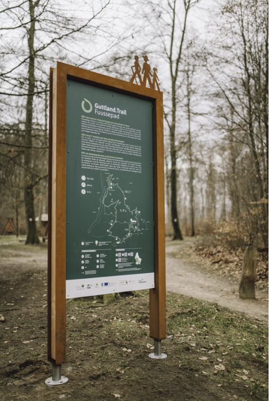 Bushalte: Michel Rodange Plaz. Buslijn 10, 11, 26, 214, 284,... Vanaf het Michel Rodange Plaz is het Guttland.Trail toegankelijk via een oranje gemarkeerd toegangspad.Het dichtstbijzijnde treinstation is 'Heisorf'.