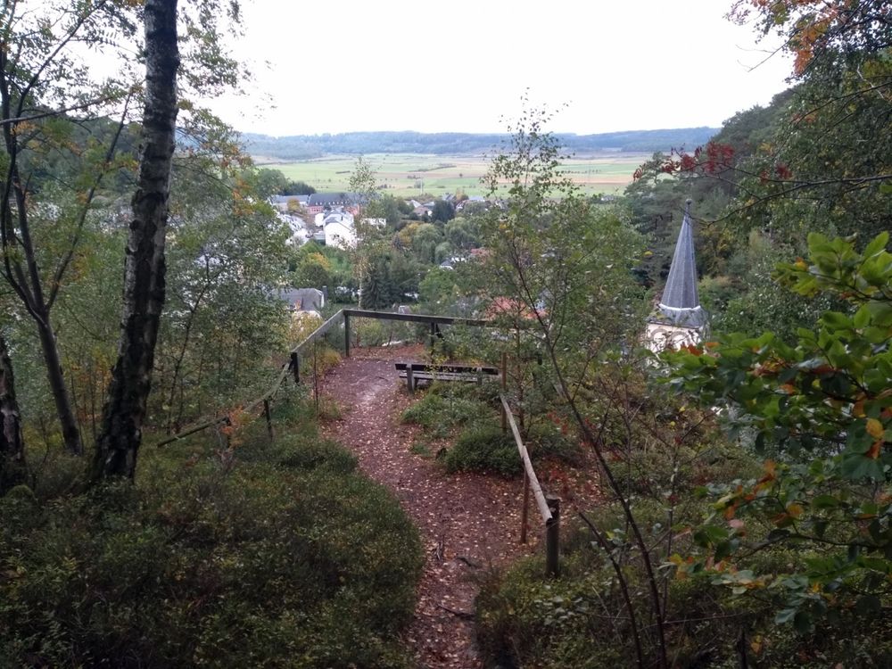 Het pad voert eerst over open velden, vervolgens naar beneden in de uitlopers van het dorp Imbringen in de vallei van de Witte Ernz en vervolgens door een gemengd beukenbos. Met prachtig zicht op het kasteel gaat het terug naar het startpunt.