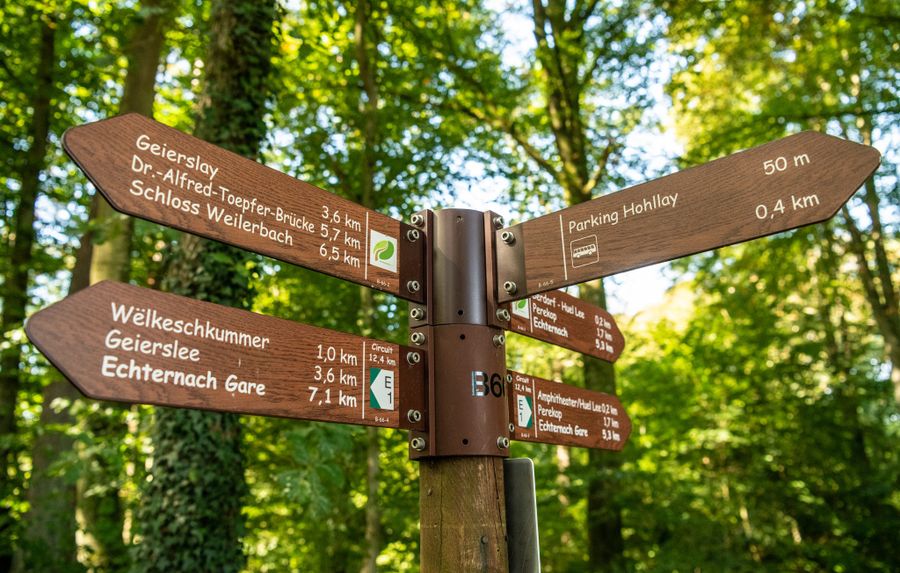 Deze route brengt unieke schoonheden van de natuur samen met indrukwekkende getuigen van de cultuurgeschiedenis van de regio links en rechts van de Sauer. Tot de hoogtepunten van de wandeling behoren ongetwijfeld rotsformaties zoals de Wolfsschlucht, Perekop en Hohllay of de canyon die 'Varkensstallen' wordt genoemd. De stad Echternach, het barokke slot Weilerbach met de oude hoogoven en de Liboriuskapel met zijn schitterende uitzicht op Echternach zijn bezienswaardigheden met allure.