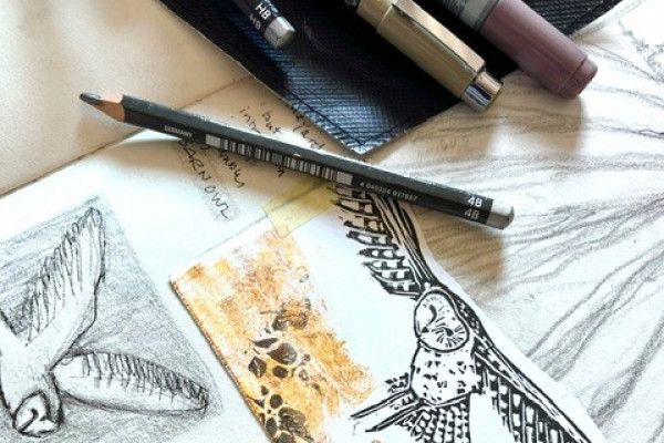 A nature lover's Fabric Printmaking workshop (beginners). All materials provided. Create & cut your personal design to print your own tote bag, or personalise a treasured item of your own.