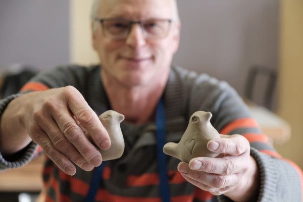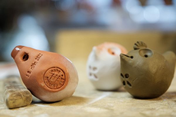 Together with the enthusiastic hobby potters from Nospelt, a typical Luxembourgish « Péckvillchen », a bird-shaped ceramic pipe fired from clay, is made. Each hand-made « Péckvillchen » is unique.