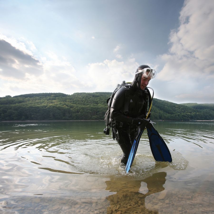 Certified divers are welcome to explore the underwater world of the Upper Sûre Lake in Lultzhausen. The bathing area in Lultzhausen provides a suitable entry point all year round. No registration is required. Divers should check the current water quality before each dive.