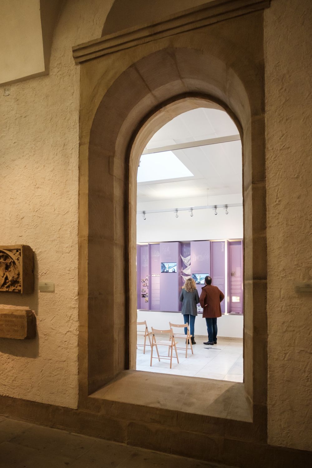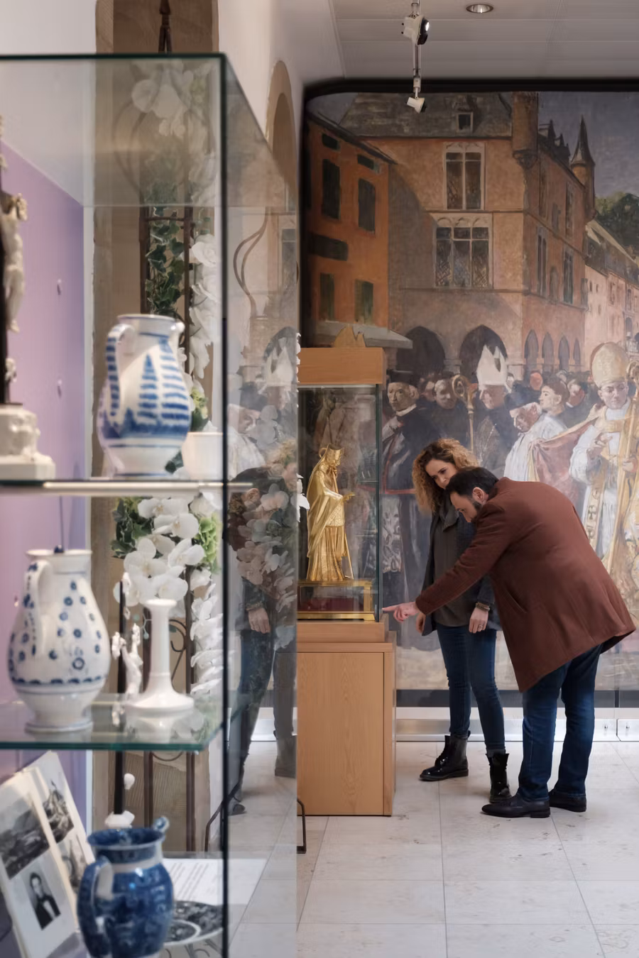 The Documentation Centre displays paintings, texts, maps, photos and films about the history and organization of the Hopping Procession and the eventful history of the Basilica. Devotional objects are exhibited in some showcases; a statue and a reliquiary present St. Willibrord as a popular saint. The remnants of funerary monuments from the former abbay (11th - 18th century) are to be seen in the adjoining corridors.
