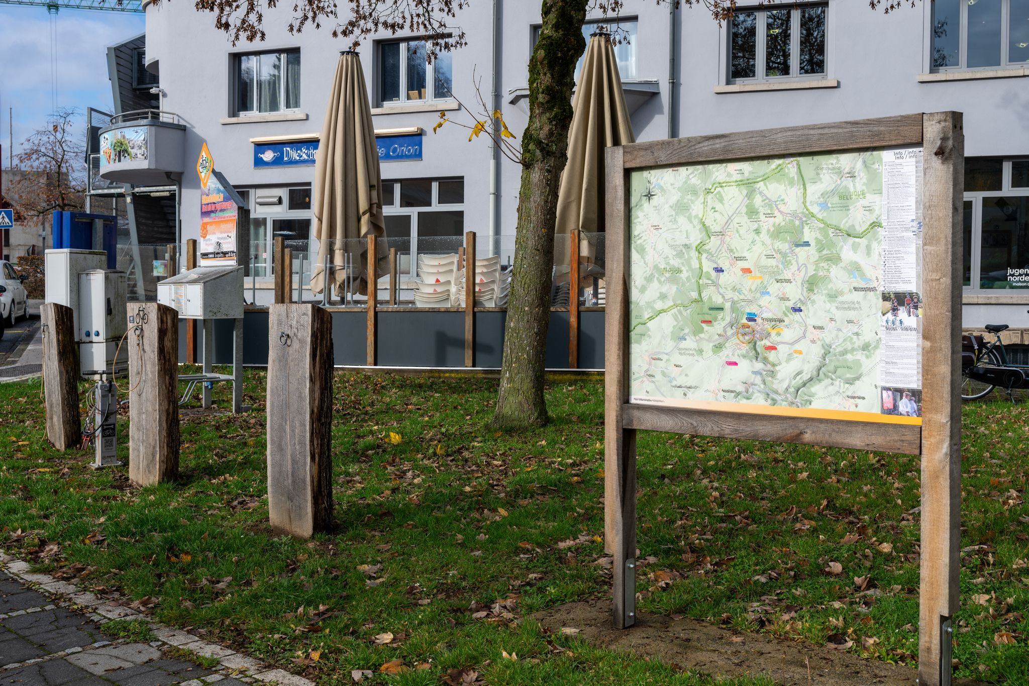 At the E-Bike charging and bike service station, you can find a selection of tools for bike repairs, as well as a vending machine with spare parts.