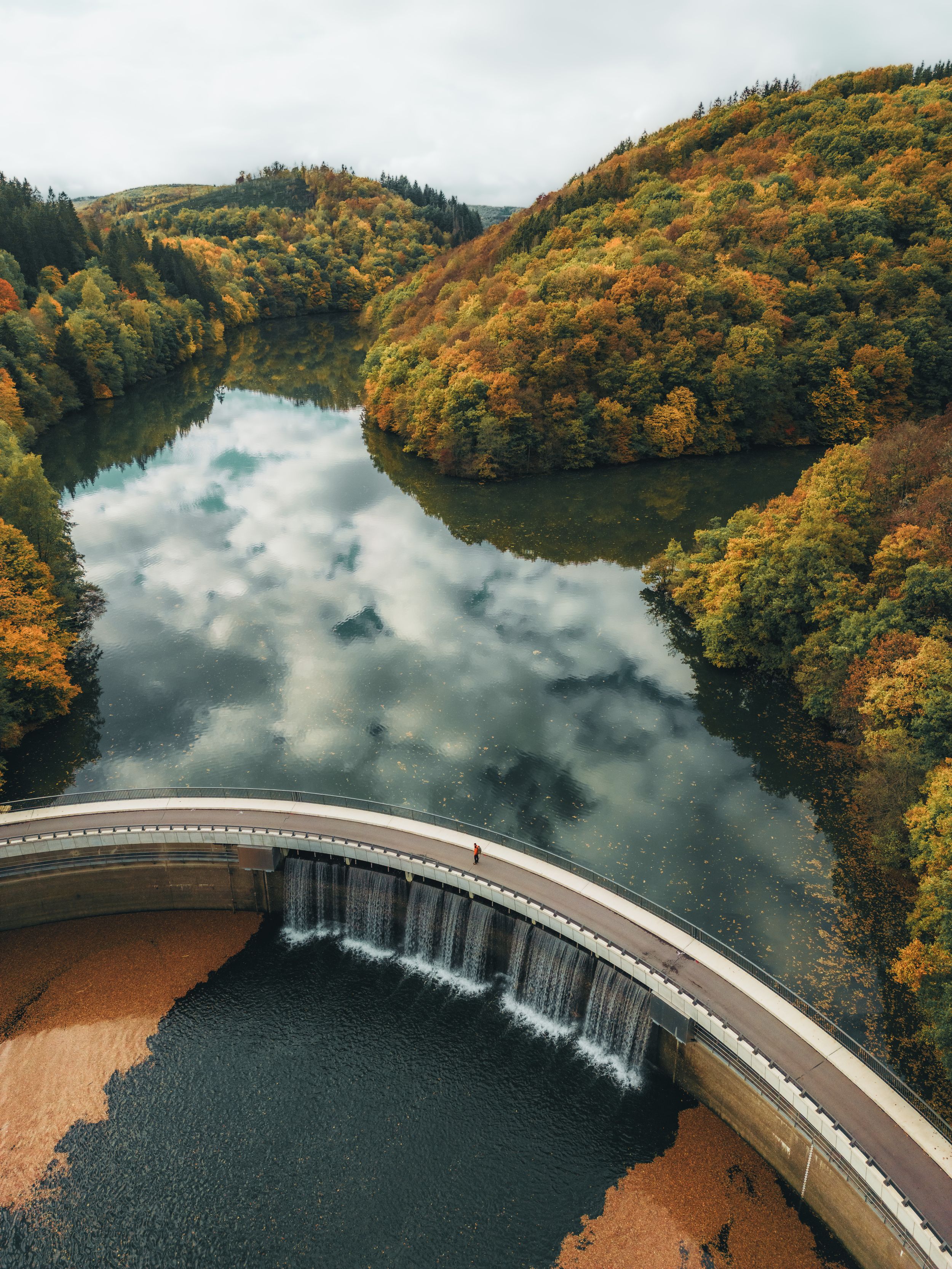 Discover the Esch-sur-Sûre dam, a masterpiece of engineering and innovation, whose curved arch design and concrete construction have shaped Éislek’s landscape since 1955.
