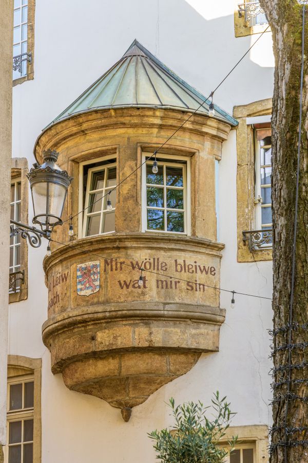 The plaque can be seen by walking across the one-arched “Grand Duke Adolphe” bridge in direction of Luxembourg train station on the side of the entrance of the right-wing building of the State saving’s Bank (BCEE)