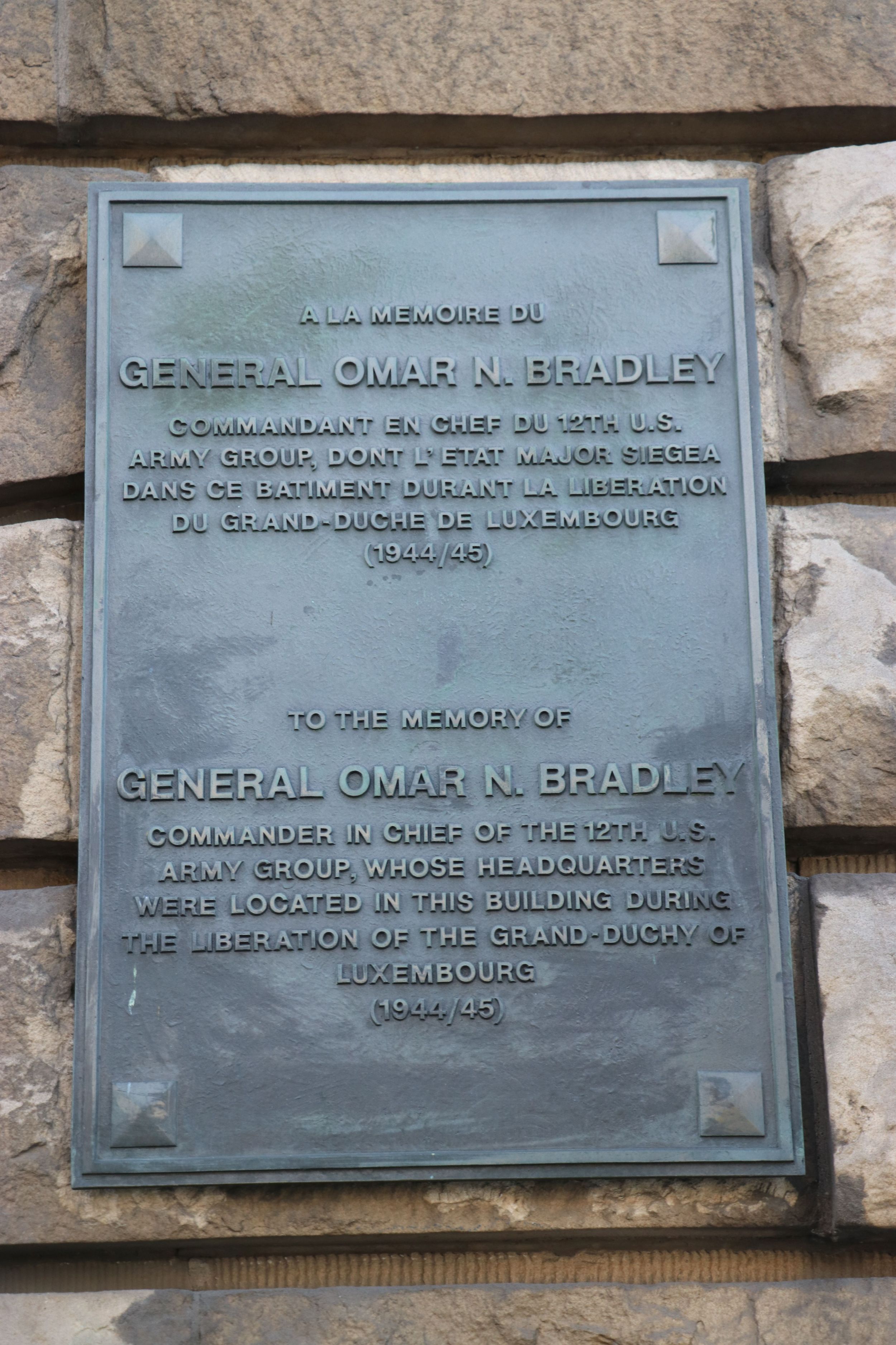 Only a modest bronze plaque fixed to the right wing of the present headquarters building of the State Savings bank (BCEE) in Luxembourg City reminds of General Omar Bradley’s former Headquarters.