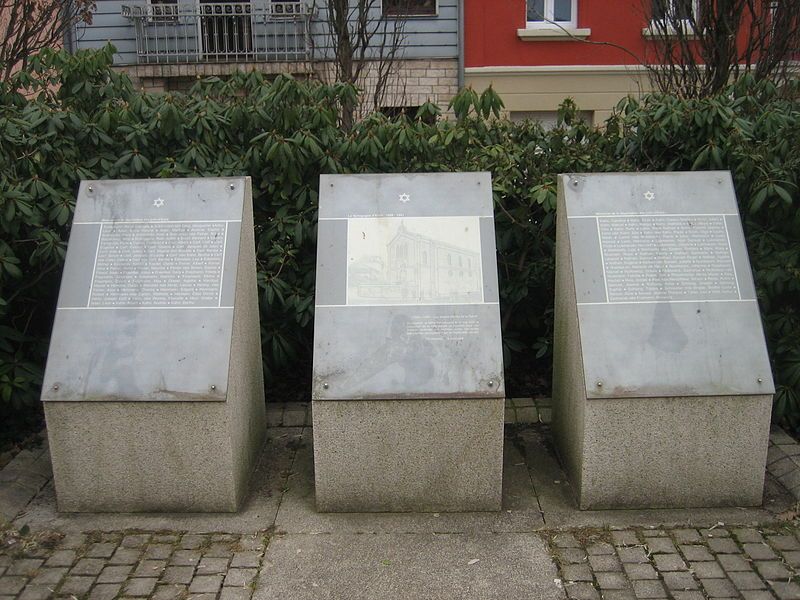 Here in Esch-sur-Alzette, the second largest city in the country and the capital of the south, there are numerous memorial sites. Remembrance cobblestones made out of brass commemorate fellow citizens who fell victim to the repression and persecution of the Nazi regime. Particularly the jewish community, which saw itself persecuted, oppressed and deported, and saw its synagogue destroyed. Today, a memorial parc stands on the former site, on the "Place de la Synagogue", commemorating the community and telling the story of their persecution.