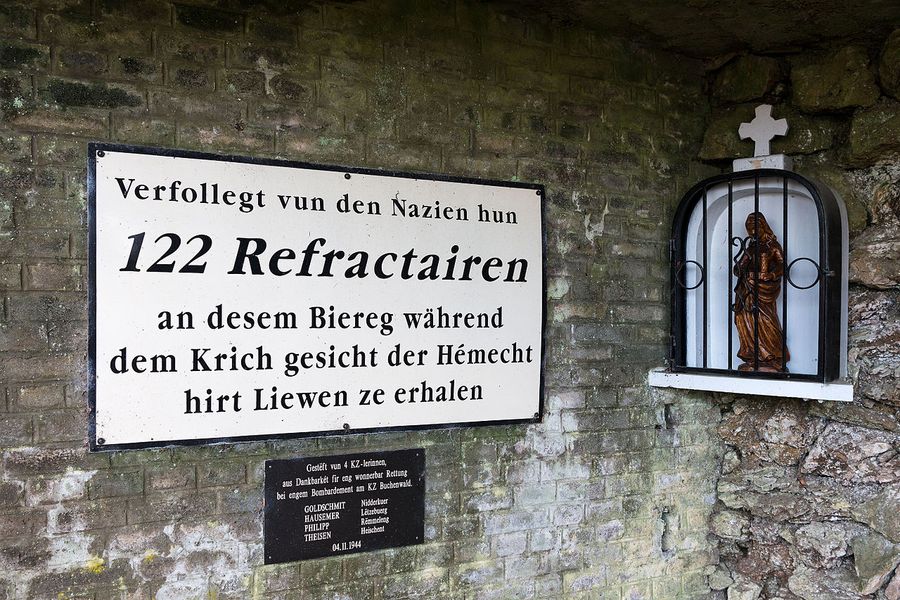 In the immediate vicinity there is also a monument to the gallery/bunker "Hondsbësch", in which 122 conscientious objectors hid as refractors from the Nazi regime's forced recruitment.