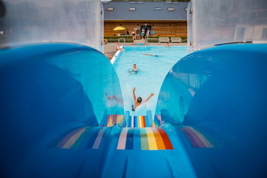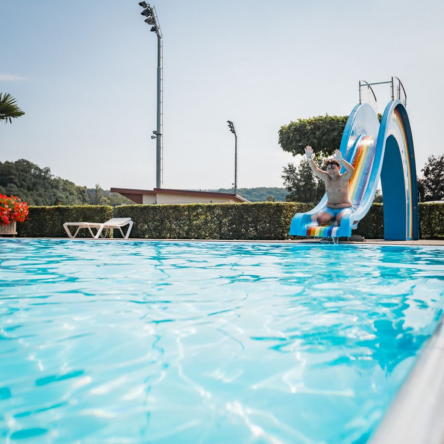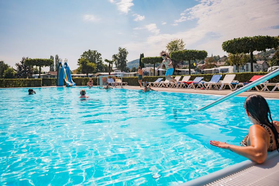 Cool off on hot summer days at the outdoor pool at Camping du Barrage.