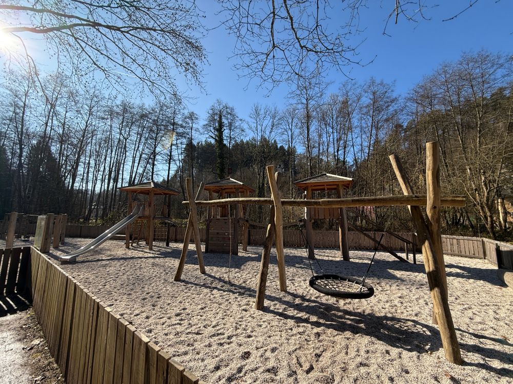 Adventure playground near the river Sûre : The large adventure playground with its numerous equipment and water games invites children to discover and explore.