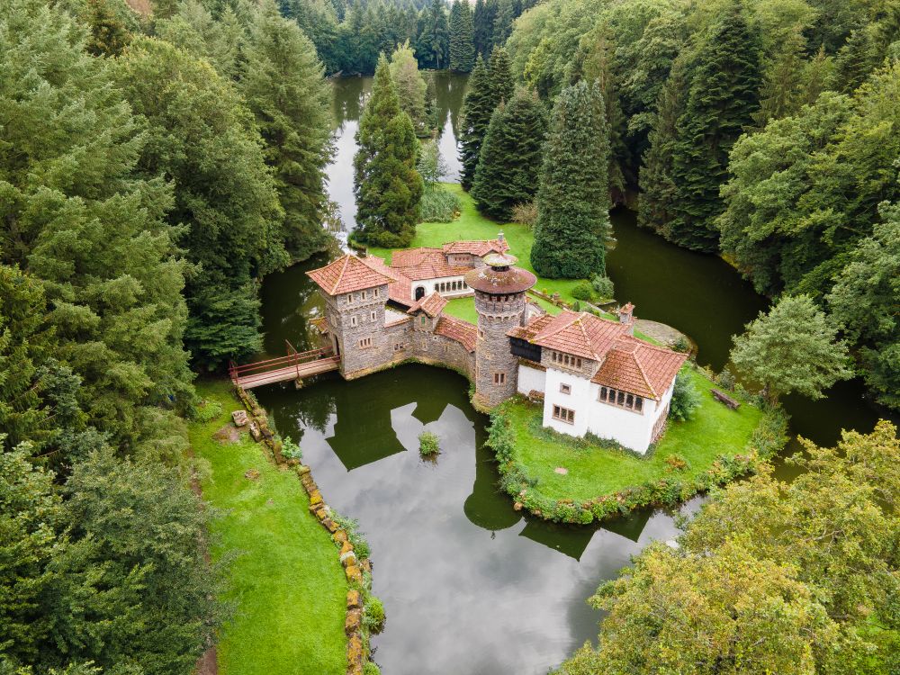 Turelbach Castle in Mertzig is a magical 20th century castle surrounded by picturesque countryside. It impresses with its classical architecture and offers a fascinating combination of historical flair and natural beauty, surrounded by manicured gardens and extensive green spaces.