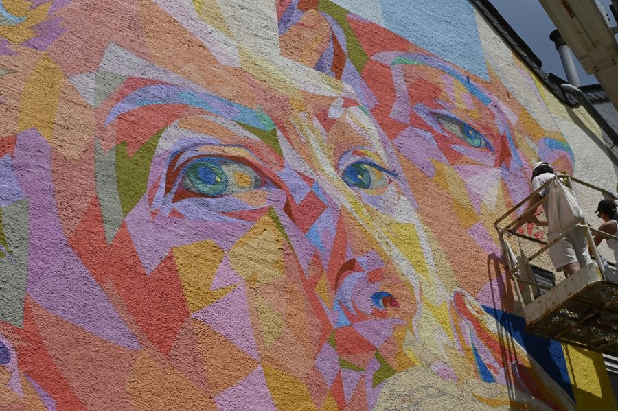 Dourone and Elodieloll completed this mural in 2021 as part of the Space-Time Collection. The mural features two images of model Nya, taken 2 seconds apart. By utilizing pixels to depict the movement, the artists prompt us to contemplate the notions of time and velocity.